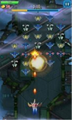 3、用一个手指滑动飞机,射杀能够消除攻击的外星生物,解锁并升级超级武器,并体验全火力冲击